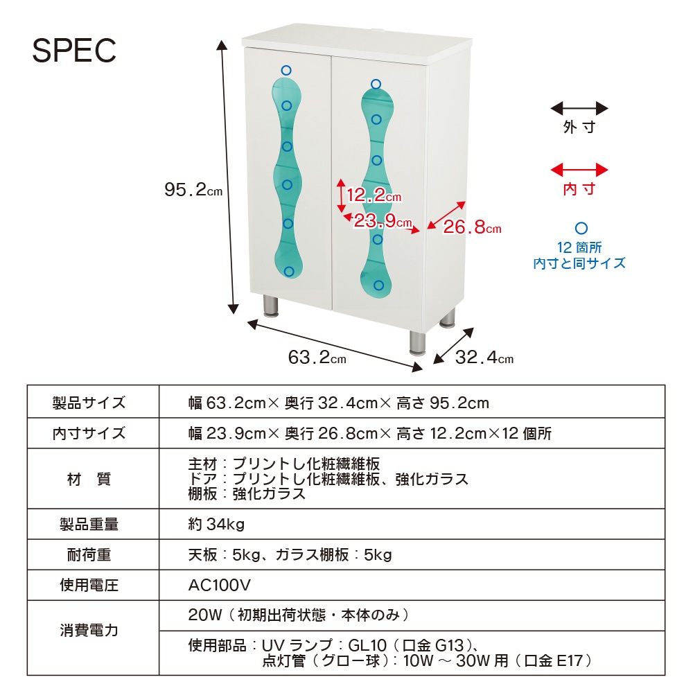 | 幅63.2cm×奥行32.4cm×高さ95.2cm |